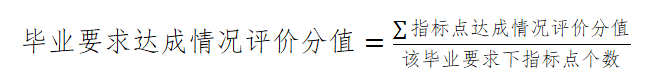 ①确定支撑毕业要求指标点的课程并计算各门课程的支撑度(课程支撑度=课程支撑度赋值×课程学分数;支撑度赋值H=3;M=2;L=1);②计算各门课程权重(课程权重=课程支撑度/毕业要求指标点所有课程支撑度之和);③计算课程对毕业要求指标点达成度的评价值(课程评价值=课程权重×课程目标达成度);④计算毕业要求各指标点的达成度评价值。将支撑某指标点的所有课程的达成情况评价值相加,得到培养方案及课程体系对该指标点的达成情况评价值。当评价某毕业要求的达成情况评价值时,取该毕业要求对应的所有二级指标点的最小值作为该毕业要求的达成情况评价值。