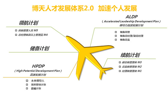 博天为不同特质的员工搭建了横向、纵向的职业发展通道,过程中还可以结合组织需求、员工意愿与个人能力,通过内部调配、内部竞聘等各种机制得以转换个人发展通道。