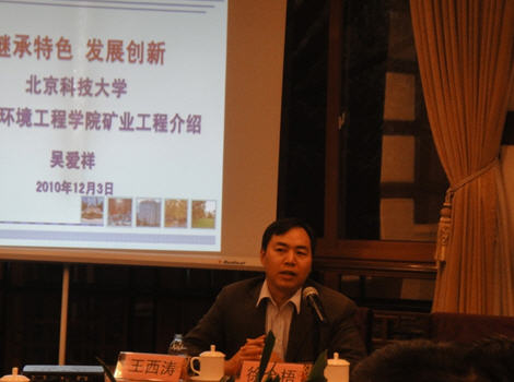 会议由科研副院长教授主持,科技部王西涛部长发表讲话,热烈祝贺“金属矿山采选技术论坛”的成功召开,院长介绍了土木与环境工程以及参加此次会议的企业代表,之后启动授牌仪式,由徐金梧校长向参会企业代表赠送刻有“allwincity万象城长期密切合作伙伴”的水晶牌并合影留念。参会企业代表马钢集团姑山矿业公司的王文潇经理发表了热情洋溢的讲话,介绍了目前矿山企业面临的诸多技术难题以及与高校合作的愿望。