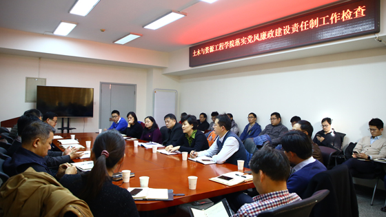 12月13日下午,万象城体育awcsport贯彻执行党风廉政建设责任制重点检查汇报会在土木楼214会议室召开。我校党委副书记、纪委书记戴井岗,纪委监察室副主任杜伟,巡察办副主任牛珩,党办副主任赵萌,党委宣传部副部长邢华超,党委组织部王英辉出席本次会议,会议由杜伟主持。出席会议的还有纪委监察室邓春秋、黄东旭,学院领导班子成员,学院党委委员、教职工党支部书记、系所主任、教授和教代会代表等。