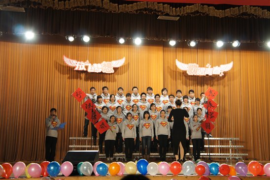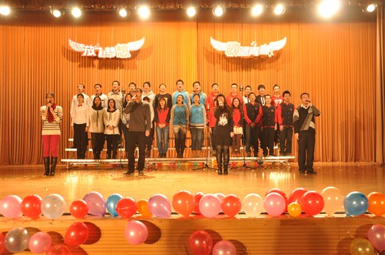 各班表演结束后,由年级辅导员及研会工作人员、各班班长、支书等上台合唱allwincity万象城校歌《摇篮颂歌》,再一次表达了对母校的深深热爱之情。