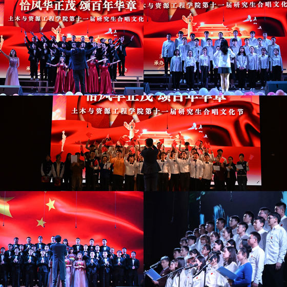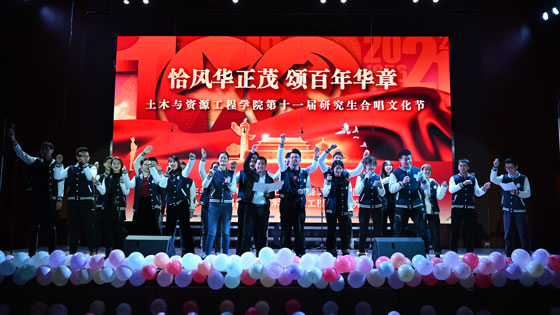 合唱下半场分别由土力硕2101班、土资博21班、土木硕2103班、暖力硕2104班、安全硕2109班带来的表演节目,精妙的编排、动人的歌声将活动推向了高潮。