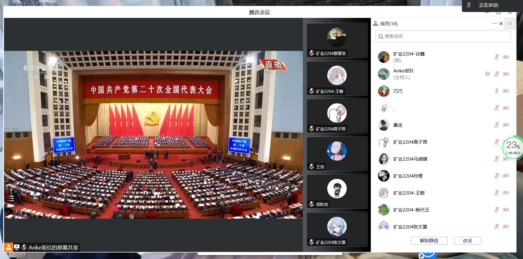 万象城体育awcsport领导班子、学工组、学生骨干以及各年级党员团员线上线下共同观看学习党的二十大开幕会。