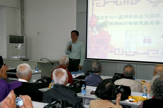 此次返校的老校友最年长的已经85岁高龄,最年轻的也已73岁。他们来自祖国各地,有的由儿女陪同,有的是夫妻相随,有的拄着拐杖,有的互相搀扶,但这丝毫不影响他们千里跋涉回到母校的激动心情。