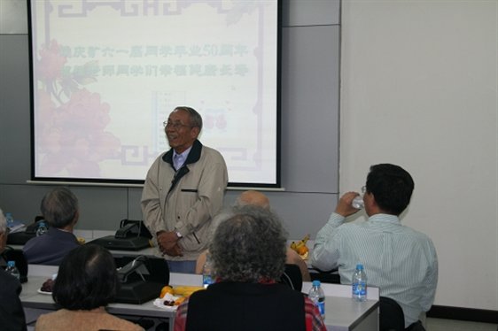高澜庆教授作为老教师代表发言,他祝福大家身体健康,并表示“一生无悔笑春蚕”。原矿二班班长于文彦作为学生代表发言,他对学校和学院的热情接待和大力支持表示了感谢,并以几句打油诗表达了内心的激动之情:“时光短暂情意长”,同窗情谊难舍难分;“老师教导记心中”,恩师教诲终身难忘;“祖国建设奔四方”,为国效力志在四方。