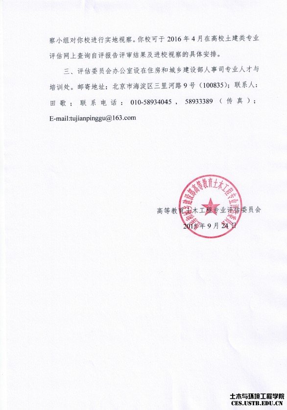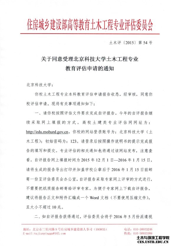 土木与环境工程学院土木工程专业教育评估申请被住房城乡建设部受理