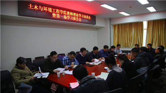 土木与环境工程学院党委一直把教师理论学习作为学习型党组织建设的重要抓手和主要学习阵地,为了深入学习贯彻党的十八大和十八届三中、四中、五中全会精神,深入学习贯彻习近平总书记系列重要讲话精神,学院按照《allwincity万象城关于加强教师理论学习的通知》要求,结合学院实际,建立健全教师理论学习制度,并制定了《土木与环境工程学院关于加强教师理论学习的计划》。并按照计划,通过党政联席会、支部组织生活会、全院教职工大会等途径,认真组织学院中心组、党员教师及积极分子、全体教师群体三个层面的理论学习,确保了学习工作有效开展、收获显著。
