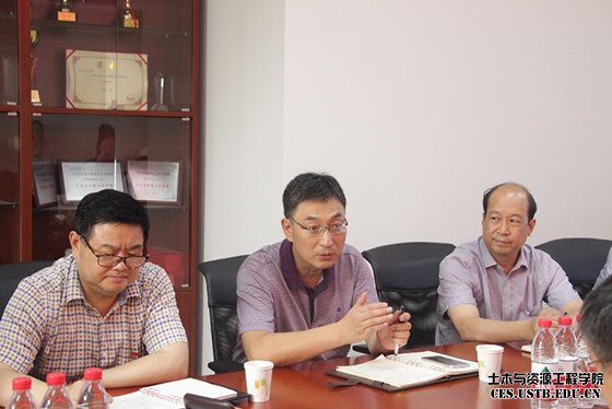 会议首先由纪洪广做了题为《加强党建工作,落实基本标准,全面推进学院发展》的汇报。纪洪广指出,在近五年学院发展过程中,学院党委全面领导各项工作顺利开展,严格落实基本标准,不断强化领导班子及干部队伍建设,贯彻落实大学章程,建立健全依法办学、民主办学制度,多方位强化思想政治工作,充分发挥基层党组织的战斗堡垒作用,强化党内外监督机制建设,加强党风廉政及思政宣传工作,巩固党建工作成绩,弘扬学院文化特色。同时也存在如何进一步加强师德建设工作、加强尖端人才培养工作、加强维护安全稳定工作以及如何扩大发展空间等问题。