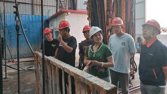 图3 我校刘娟红教授(右三)技术团队指导井壁混凝土浇筑