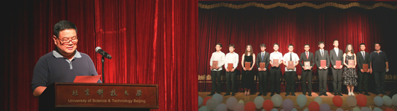庄严肃穆的国歌拉开了典礼的序幕。典礼上,院长金龙哲温情寄语毕业生,一同回顾了过去四年之中学校、学院的建设发展历程,一起细数了大学时光之间的点滴记忆。在同学们毕业之际,他对大家提出了三点希望:一是希望同学们常怀进取、求实和宽容之心,把握机遇;二是希望同学们能够保持自强、奋斗之力,在历练中成长;三是希望大家常念母校、同窗之谊。最后他表达了对毕业生们的美好祝福,欢迎同学们常回家看看,希望同学们可以初心依旧,从北科重新出发,在这芳华之际,去追逐自己心中的梦想!
