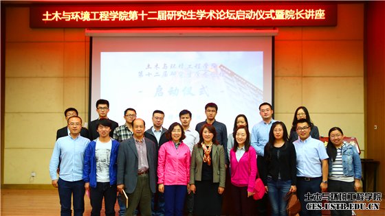 5月12日下午,土木与环境工程学院第十二届研究生学术论坛启动仪式暨首场报告会在镭目报告厅举行。学校研究生工作部部长张颖、土木与环境工程学院院长王媛、副院长纪洪广与学院青年教师、辅导员、硕博研究生共计150余人参加活动,活动由学院党委副书记邓波主持。