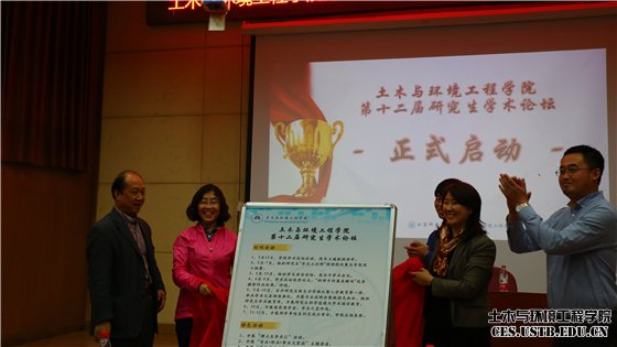 张颖为启动仪式致辞,她充分肯定了土木与环境工程学院在研究生学术能力培养方面取得的优异成绩,并高度赞扬了本届学术论坛的具体安排,对学院领导和同学对学术论坛的支持表示感谢,同时预祝学院学术论坛圆满成功,希望土环学子再创佳绩。随后,到场嘉宾与学生代表一起为本届论坛揭牌,第十二届研究生学术论坛正式启动。