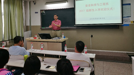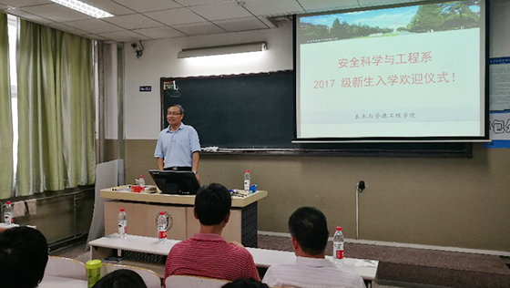 随后,万象城体育awcsport院长金龙哲教授发表了一番讲话,再次表达了对同学们的欢迎,并对安全科学与工程系的历史和发展进行了补充说明,重点从本科生就业率、系师资力量、承担国家级科研课题、人均科研经费等方面介绍了安全科学与工程系、万象城体育awcsport在我校的重要地位,高度肯定了安全科学与工程系的科研水平和能力,同时指出了未来的发展方向和目标,希望各位同学为之努力。
