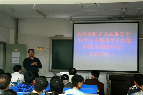 孙校长的谆谆教诲及殷殷期望还萦绕耳边,安全系主任教授又从专业培养目标、历史沿革、学术研究、学术培养及就业方向等方面对安全科学与工程专业做了进一步的介绍,使新生对即将到来的大学学习、生活有了更加清晰的认识和更加饱满的热情。同学们反映很积极并报以热烈的掌声。