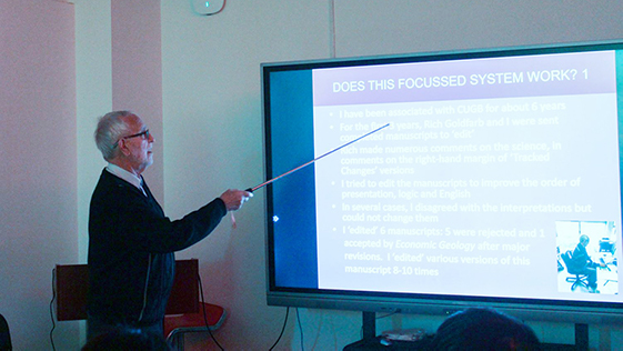 报告的第一部分,David I.Groves就如何撰写科技英语写作展开讲述。将他从事科研多年来的宝贵经验融入具体详实的例子当中,从“如何选择研究课题”到“采用何种研究手段”,再到图表编辑,更细致到文章中的英语语法、时态、介词运用等方面。David I.Groves着重强调了文章中逻辑的重要性。