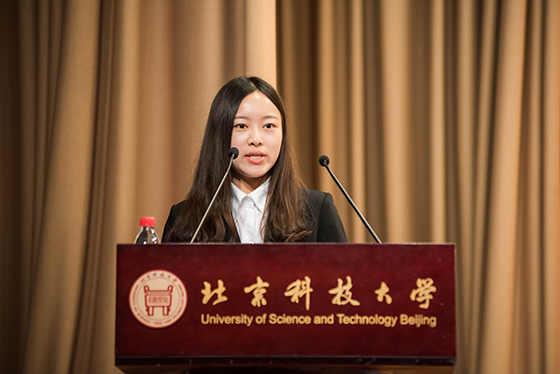 在庄严神圣的国歌声中典礼正式开始,金龙哲介绍学院发展和研究生培养情况并致欢迎辞。接下来,典礼上宣布了学院上一年度学术之星获奖名单并为学术之星代表颁奖,激励新生不断进取。教师代表金爱兵发言,对研究生提出学会创新、惜时等几点期望。老生代表、学院研究生会主席王志凯发言,与台下的新生们分享经验。2017级新生代表李思琦最后发言,表达了对接下来的北科研究生生活的期待与信念。