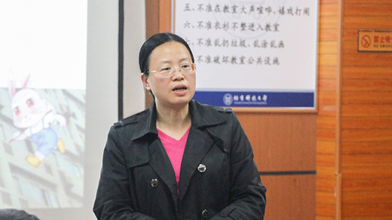 刘洋老师向同学们介绍了本专业就业方向与就业情况,希望同学们不断学习进步,为自己将来学习工作打下坚定基础。