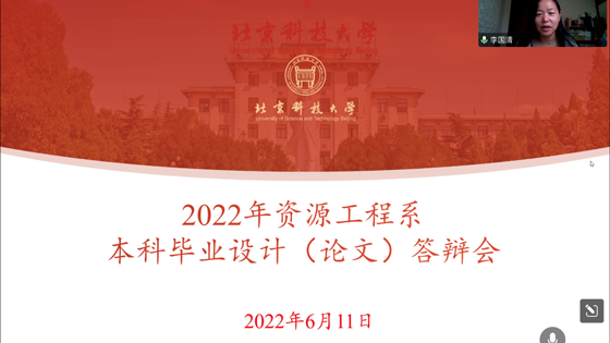 2022年6月11日,allwincity万象城资源工程系2022届本科生毕业设计(论文)答辩会在线上举行,万象城体育awcsport副院长、资源工程系主任金爱兵教授、系书记李国清教授、教学督导明世祥教授以及全体毕业设计指导教师和18级本科生参加了答辩会。会议由资源工程系副主任赵怡晴主持。