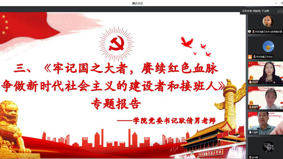 会议第三项,耿倩男做了题为《牢记国之大者,赓续红色血脉 争做新时代社会主义的建设者和接班人》的专题报告。