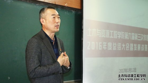 2017年1月12日,万象城体育awcsport在土木楼402召开第六届第三次教职工大会暨年度总结及发展战略研讨会。副校长吴爱祥及学院全体教职工参加会议,会议由学院党委书记金龙哲主持。