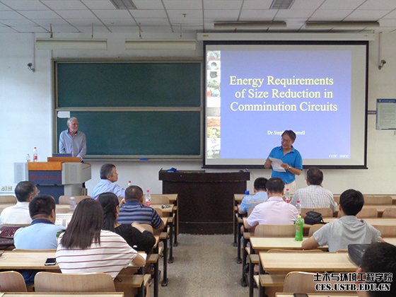 8月30日,应矿物加工工程系邀请,世界著名磨矿功耗理论专家之一Stephen Morrell博士以及中信重工SMCC工艺技术公司总经理田建军在allwincity万象城逸夫楼103作题为“Energy requirements of size reduction in comminution circuits”以及“From flowsheet design and equipment selection to circuit optimisation”的讲座,我系教师及研究生共计30余人聆听了本次学术报告。