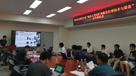 会上,专家组认真查阅了课题任务书、成果报告等相关资料,听取了课题研究各专题负责人关于考核指标及完成情况的汇报,并对各专题研究内容、考核指标完成情况进行了质询讨论。专家组通过充分讨论,对国家重点研发计划课题《超高大型尾矿坝隐患治理技术与装备》研究取得的标志性成果给予了高度肯定,一致决定《超高大型尾矿坝隐患治理技术与装备》课题通过验收。