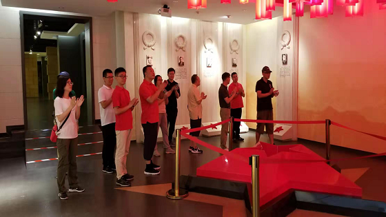 之后,安全系教师们前往平北抗日战争纪念馆参观学习。在平北抗日根据地纪念碑前,教师们首先向革命先烈敬献花圈,并三鞠躬,缅怀革命先烈的爱国主义精神;然后全体教师面向党旗,举起右拳跟随系党支部副书记高娜副教授一起重温了入党誓词。缅怀仪式由安全系党支部宣传委员宋大钊副教授主持。