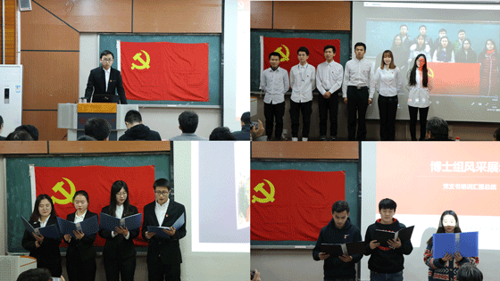 随后,各位学员以小组形式进行培训成果展示。各小组分别总结分享了他们参加培训班的收获和感悟,其中本科党支书及硕16级党支书小组为大家展示了他们精心制作的合唱视频《走进新时代》;硕18级党支书小组现场合唱一首《北京欢迎你》;硕17级党支书小组和博士党支书小组则分别为大家带来了慷慨激昂的诗朗诵:《相信未来》和《我是一块钢》。