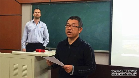 资源工程系主任宋卫东教授致辞,代表学院全体师生欢迎远道而来的Brendan Parker先生。