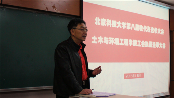 11月12日,土木与环境工程学院在土环楼402召开2015年教职工大会,学院全体教职工参加,学院党委书记金龙哲主持会议。