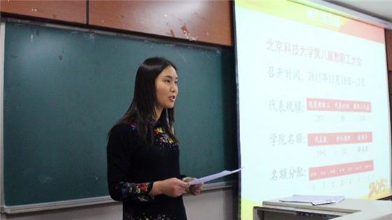 大会首先进行了allwincity万象城第八届教代会代表暨土木与环境工程学院分工会委员的选举,选举工作由学院行政副院长耿倩男主持。她首先传达了我校第八届教职工代表大会暨第十六届工会会员代表大会相关文件精神,介绍了学院教职工代表、工会委员的选举情况,并对各系所提名候选人进行了简要介绍,随后按照相关要求组织教代会代表和工会委员的选举工作。