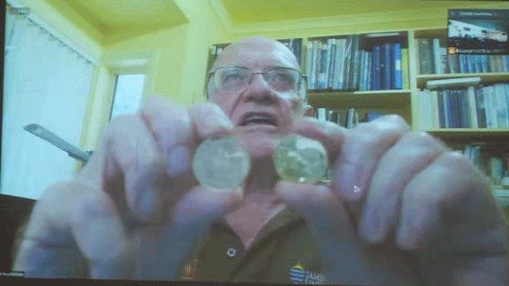 Noel White教授展示不同质量、不同成分的金币