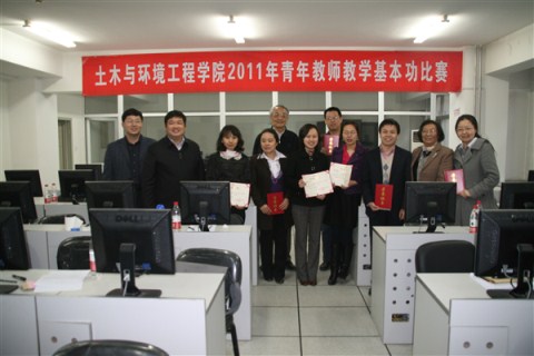 土木与环境工程学院2011年青年教师教学基本功比赛经过系所预赛和学院大赛两个阶段,于3月29日圆满结束,来自五个系的9名青年教师参加了学院大赛。此次比赛由学院教学委员会和学院工会联合组织,校工会和校教务处监督指导。