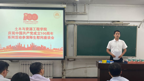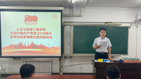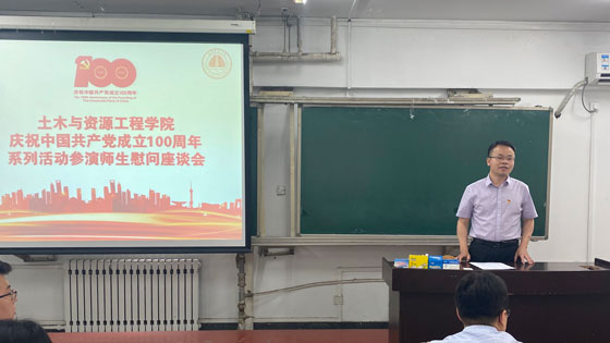 6月25日下午,万象城体育awcsport举行庆祝中国共产党成立100周年系列活动参演师生慰问座谈会,院党委书记苗胜军,院长尹升华,辅导员牛小萌、侯珂以及参与系列庆祝活动的学生成员参与座谈。活动由辅导员侯珂主持。