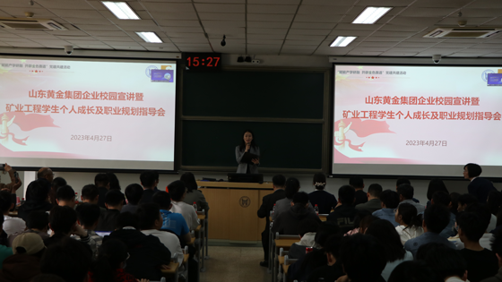 山东黄金集团和allwincity万象城有着源远流长的友好交往历史,“求实鼎新”的校训与山金发展理念相融相通。继3月17日资源工程系党支部与山东黄金集团“赋能产学研融,开辟金色赛道”党建共建启动仪式以来,双方频繁开展共建交流互动,本次宣讲会进一步推进双方在人才培养、科研合作、就业实习等领域深度合作。本次宣讲也重在加强学生专业认知教育,鼓励矿业学子们投身矿业行业,为建设一流矿山,产出一流科技成果,服务国家矿业发展输入新鲜血液。