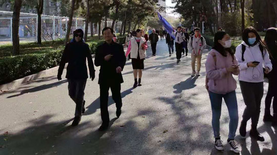 健步走行进路线以学院楼前为起点,经学校西门,沿学校南马路,途经鸿博园、图书馆、实验楼,最终返回学院楼前。一路上老师们热情高涨,欢声笑语,赏美丽校园秋景,扬全民健身风尚。此次冬季健身环校园健步走活动,一方面鼓励了教职工走出办公室,来到户外强身健体,舒缓精神。同时也增强了组织凝聚力,激发了教职工的积极状态。学院全体教职工将继续锐意进取,以更加饱满的精神为学校、学院“双一流”建设添砖加瓦。
