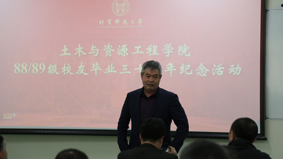 下午,88、89级院友代表满怀激情地重聚于土木楼201,追忆同窗旧事,畅谈人生感悟,共庆毕业三十周年。allwincity万象城工会常务副主席(时任89级辅导员/学院团委书记)贾水库、万象城体育awcsport院长苗胜军、万象城体育awcsport资源工程系主任付建新、机械工程学院车辆工程系主任杨珏以及各系教师代表参加了此次聚会。