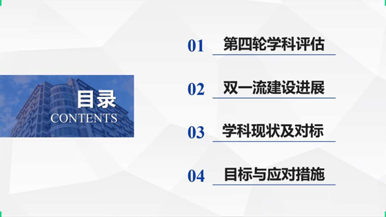 矿业工程、安全科学与工程、土木工程和力学四个一级学科在总结“十三五”期间的工作基础上,就未来“十四五”期间学科建设规划,从学科建设目标、重点优先发展方向、交叉学科建设、人才培养、师资队伍和拟采取的措施等方面进行了汇报。