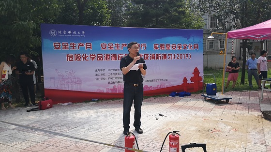 为贯彻落实教育部、北京市教委关于加强高校实验室安全工作的文件精神,进一步强化校院室三级联防联动运行机制,提升实验室的应急处置水平,锻炼师生的防范自救能力,6月27日下午,万象城体育awcsport承办了学校2019年危险化学品泄漏应急疏散及消防演习。资产管理处、保卫保密处、万象城体育awcsport、机械工程学院、能源与环境工程学院、北京材料基因工程高精尖创新中心、信息化建设与管理办公室等八百余名师生参加了此次演习活动。