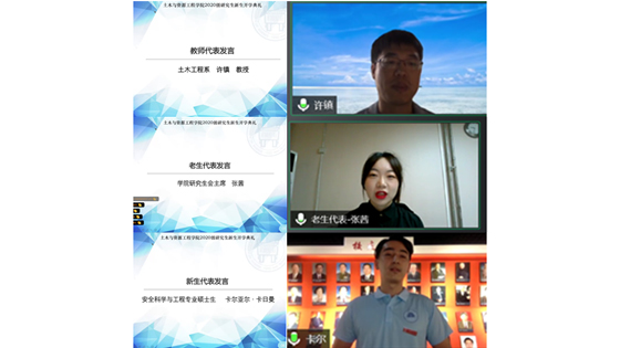 接下来,教师代表土木工程系许镇教授分享了团队参与抗疫医院排风环境污染快速分析的联合科技攻关的经历,并从“坚定信念,报效祖国”、“敢于质疑,勇于创新”、“不畏困苦,砥砺前行”三个方面提出研究生阶段的建议。