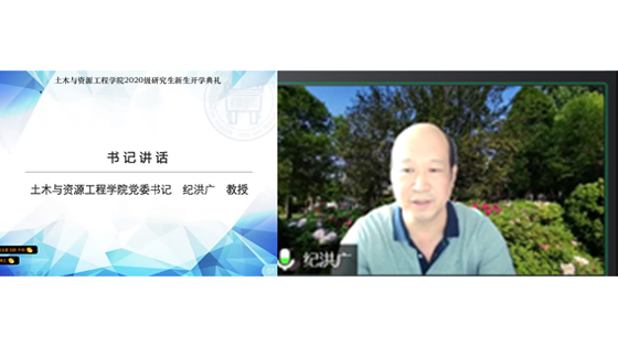最后,学院党委书记纪洪广教授讲话,对研究生新生提出了坚定信念、严于律己、认真求学等要求,并强调了疫情防控常态化下积极防控、合舟共济的重要性,期待研究生新生们能在土资学院书写人生绚丽篇章。