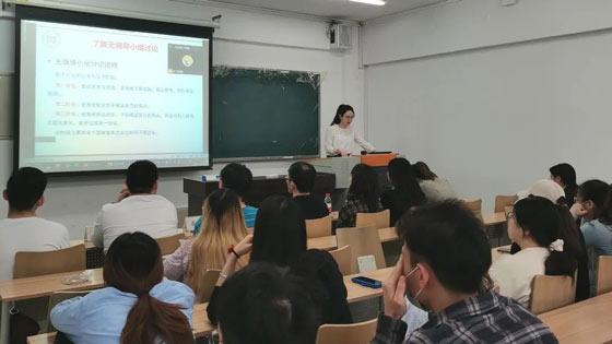 活动伊始,赵莹莹老师开场动员。她讲解了找工作过程中需要注意的问题,并通过实际案例从了解无领导小组讨论、模拟无领导讨论、技巧和注意事项几方面展开,进行了求职技巧的指导。