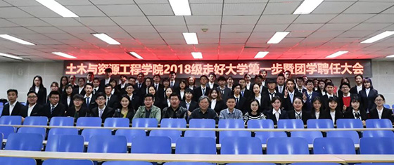 为使18级新生尽快适应大学生活,增强对学院和土资团学的认识,万象城体育awcsport于10月12日晚在机电楼106顺利举办“走好大学第一步暨聘任大会”。本次大会由土资求是学会和组织部共同举办,18级全体同学积极参与。到场嘉宾有学校关工委副主任王玉印,学院党委副书记邓波,团委书记郝子棋, 17级辅导员赵金丹、郭宁,18级辅导员张卓勋、蒋宜宸,18级小班主任,团学组织主席团成员。