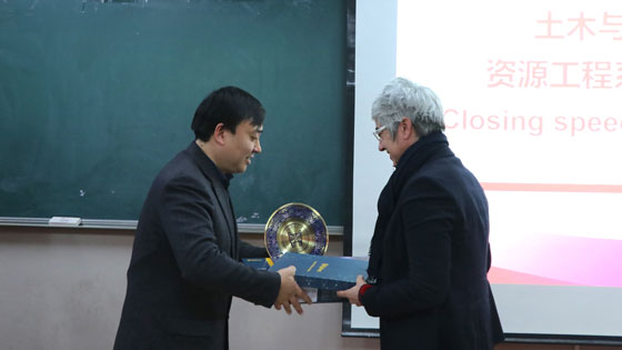 资源工程系主任金爱兵与安百拓副总裁Sofie Gielen交换了双方单位的纪念品。