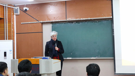 安百拓中国区副总裁Sofie Gielen 在讲话中谈到安百拓与我校之间亲密的关系,她向获得奖学金的同学表示祝贺,表示双方进一步加深“智能采矿创新班”的战略合作,共同培养新一代的智能采矿人才,欢迎各位同学去南京安百拓公司。