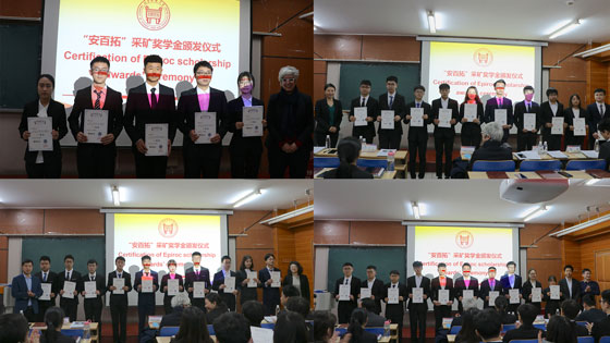 安百拓贸易有限公司人力资源部经理袁荃获得“安百拓”采矿奖学金的54名同学名单,并向获得奖学金的同学表示祝贺。
