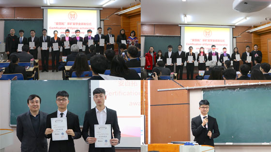 Sofie Gielen副总裁、陈大鹏副处长、于宝库副书记、金爱兵系主任等出席嘉宾分别向获得奖学金的同学代表颁发荣誉证书。