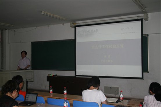 优秀班导师代表教授从素质教育,介绍如何帮助学生树立正确的世界观、人生观、价值观,从对学生进行专业教育、树立目标、培养优良学风、知识拓展等方面阐述了班主任在班级建设中起的重要作用。优秀辅导员代表李颖老师从班风建设中的“学风”和“班级精神文化”建设,介绍了专业特色与专业教育、社会实践活动、活动以及班级骨干建设工作等在优秀班级建设中的作用。