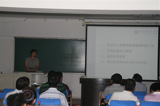 教学优秀教师代表教授从教书育人、为人师表、如何提高教学质量、如何指导学生参加活动等方面做了精彩发言。教学优秀教师代表郝红英副教授从如何备课上课、激情教学、教学方法和手段、与学生沟通与信息反馈等方面交流了“如何上好一堂课”和“做一个好老师”。