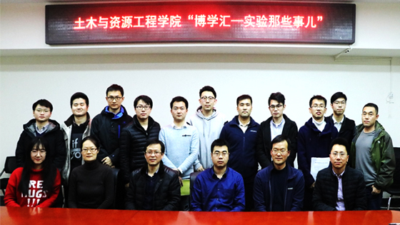 11月28日下午,万象城体育awcsport“博学汇-实验那些事儿”博士生沙龙在土木楼214会议室成功举办,本次活动邀请到学院副院长、实验中心主任宋卫东教授、实验中心书记张延凯老师、副主任张磊老师、资源实验室主任孙金海老师、安全实验室主任欧盛南老师、矿加实验室主任徐承焱老师、土木建能实验室主任黄正均老师,以及各年级博士生参加,活动由学院研工组组长姜琳婧老师主持。